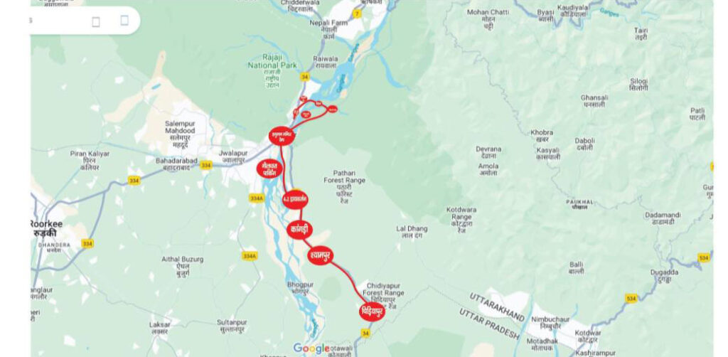 रामपुर तिराहा ► देवबन्द► कोल्की टोल प्लाजा ►बडकला ►मण्डावर ► अब्दुल कलाम चौक ► नगला ईमरती ► लक्सर ► एस0एम0 तिराहा ►बैरागी कैम्प पार्किंग