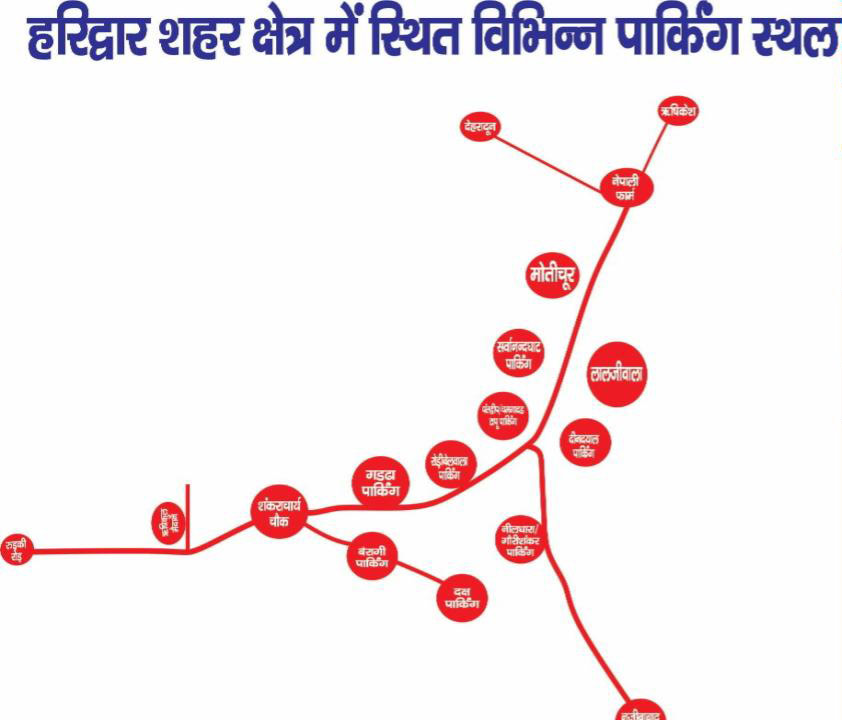 नेपाली तिराहा ► रायावाला ► दूधाधारी तिराहा ► मोतीचूर पार्किंग में पार्क करायी जायेंगी।